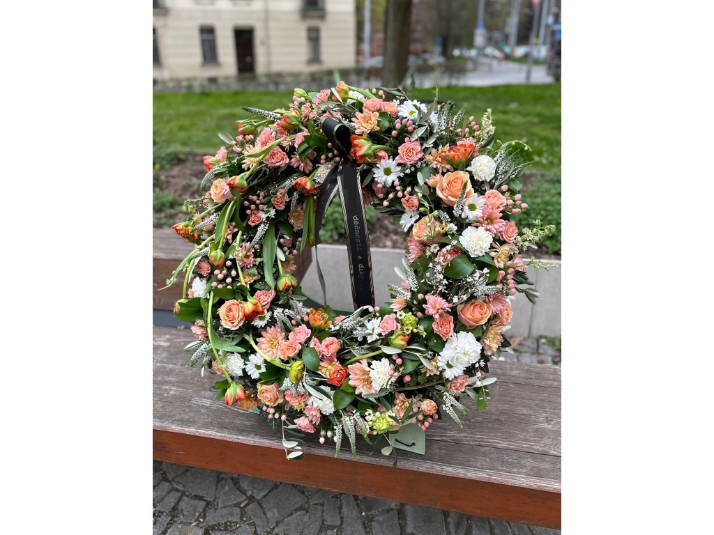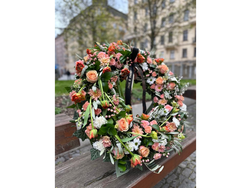 Smuteční květinový dar ve tvaru věnce z živých květů v průměru 60-70cm
